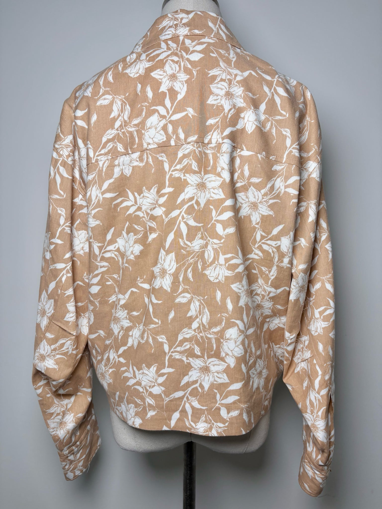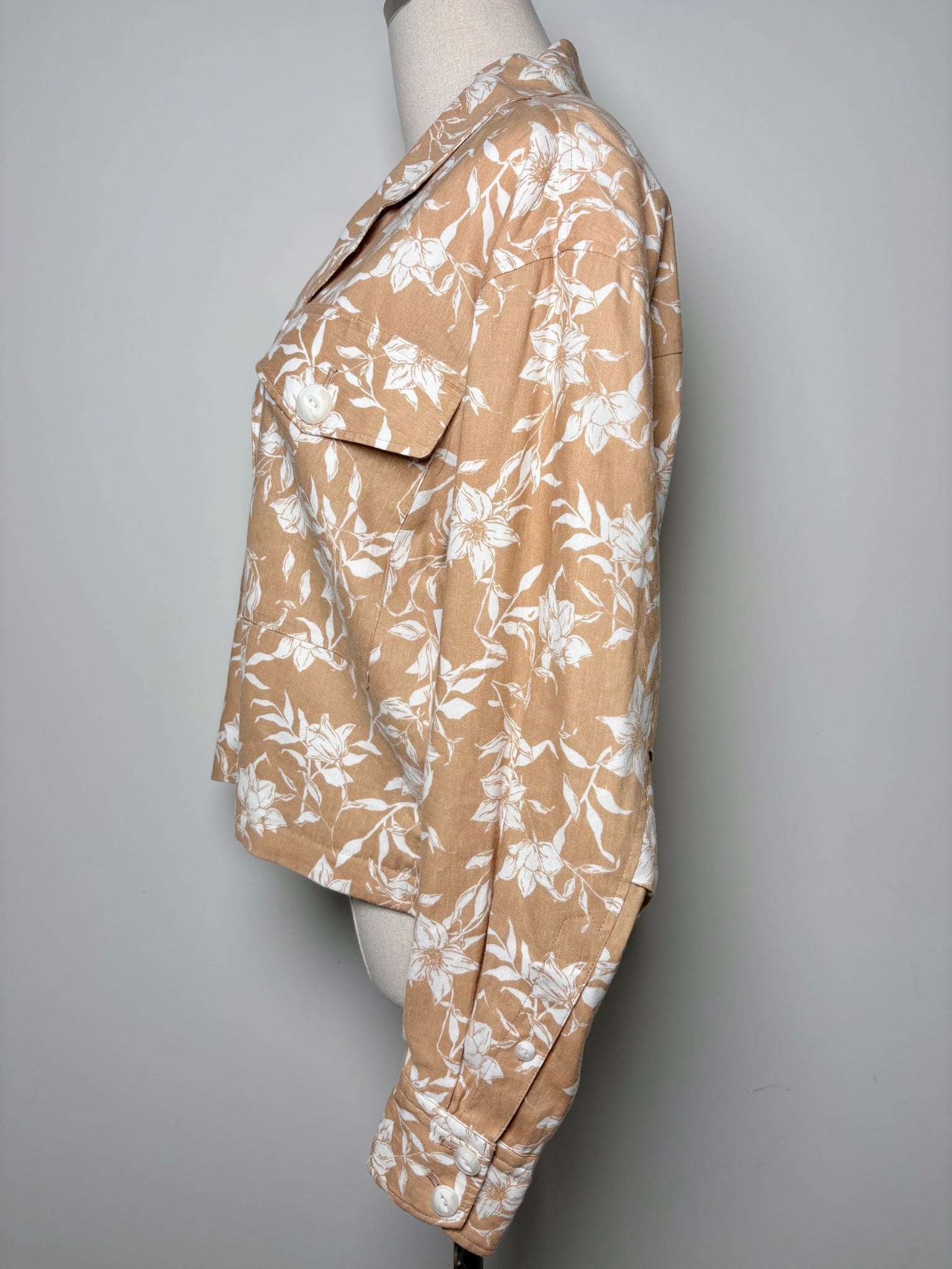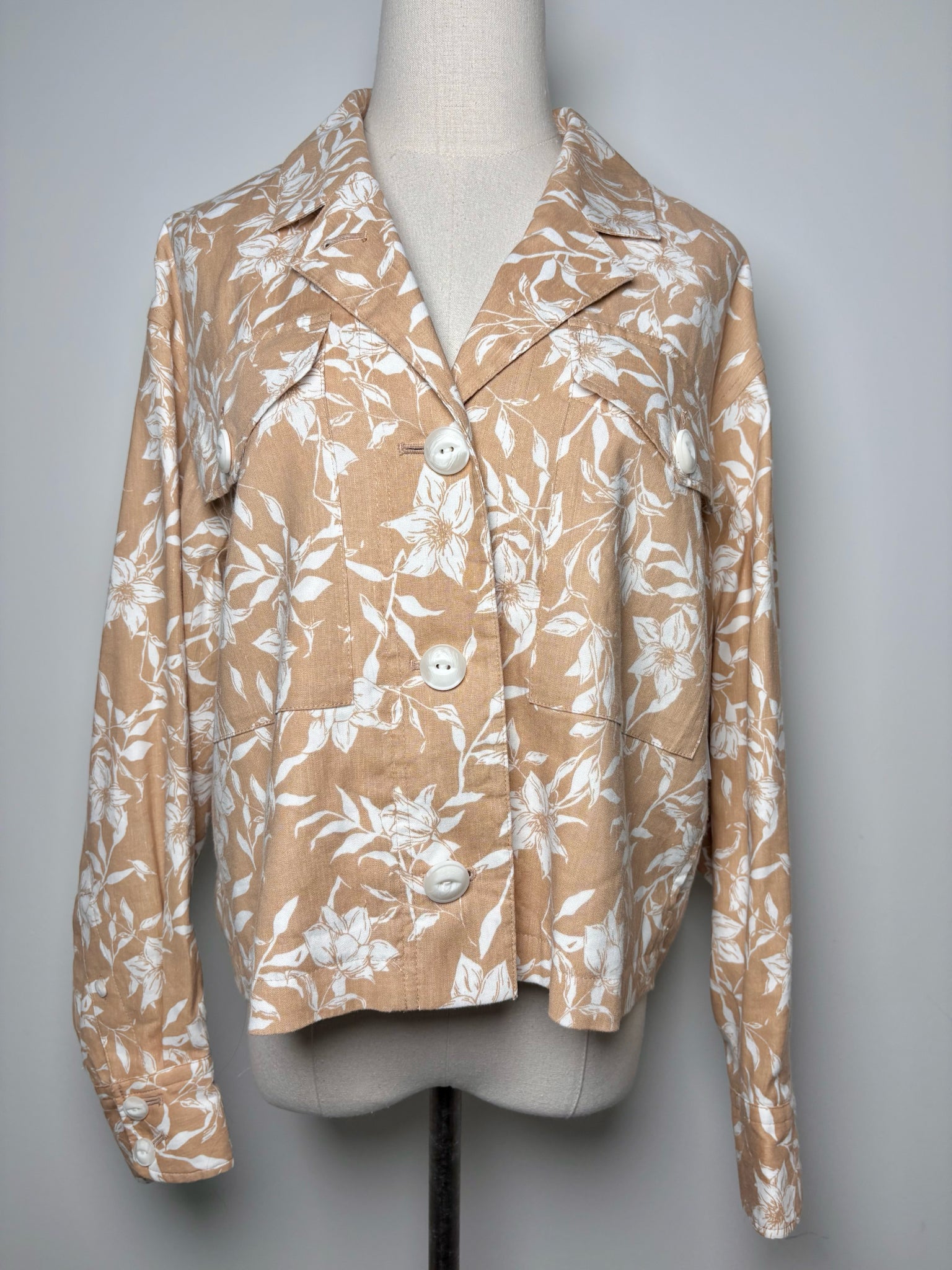 Rag & Bone tan and white floral print jacket with pockets in a size small. Pre-owned.