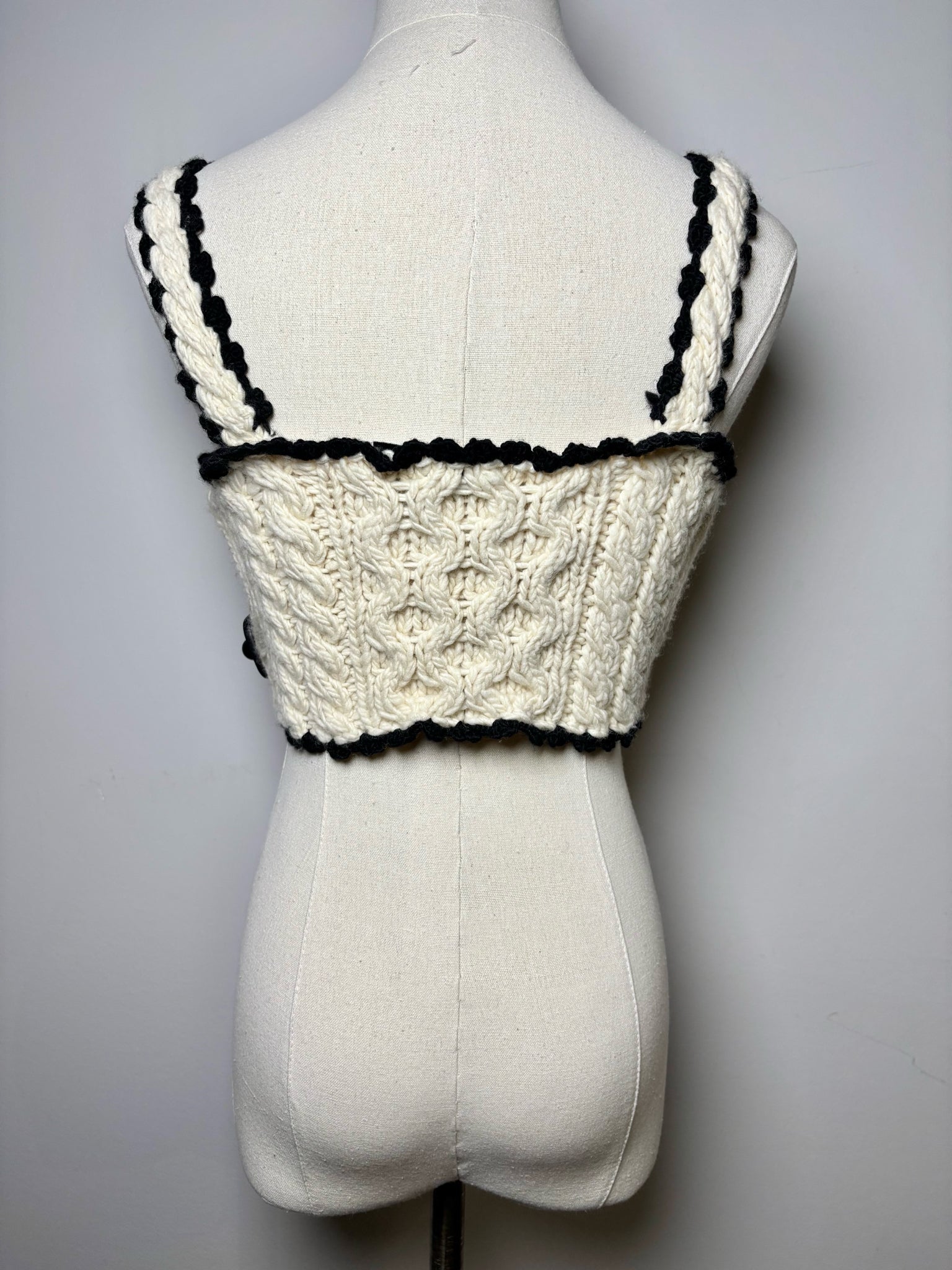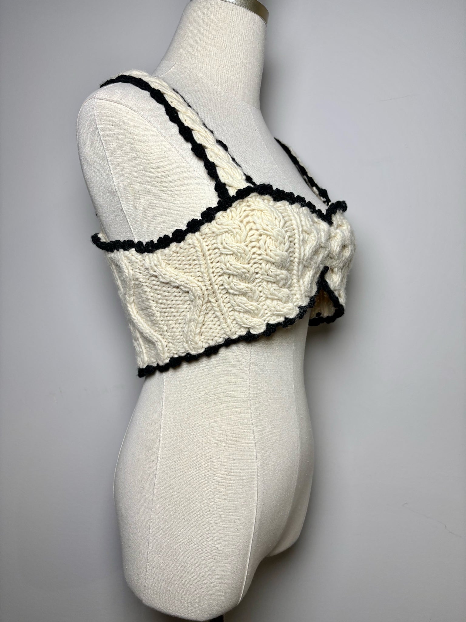 SEA New York cream wool knitted bralette top with black trim. Pre-owned.