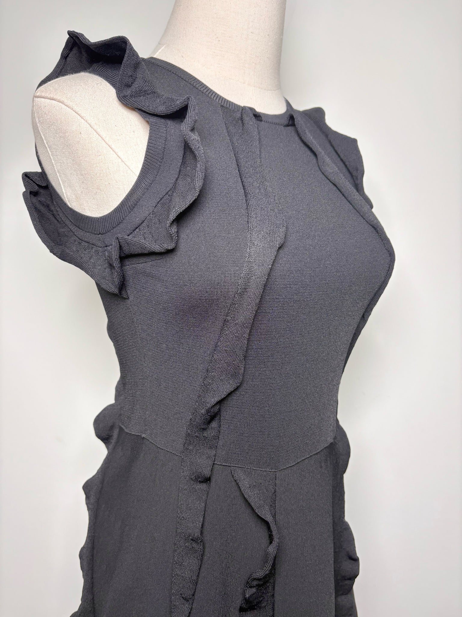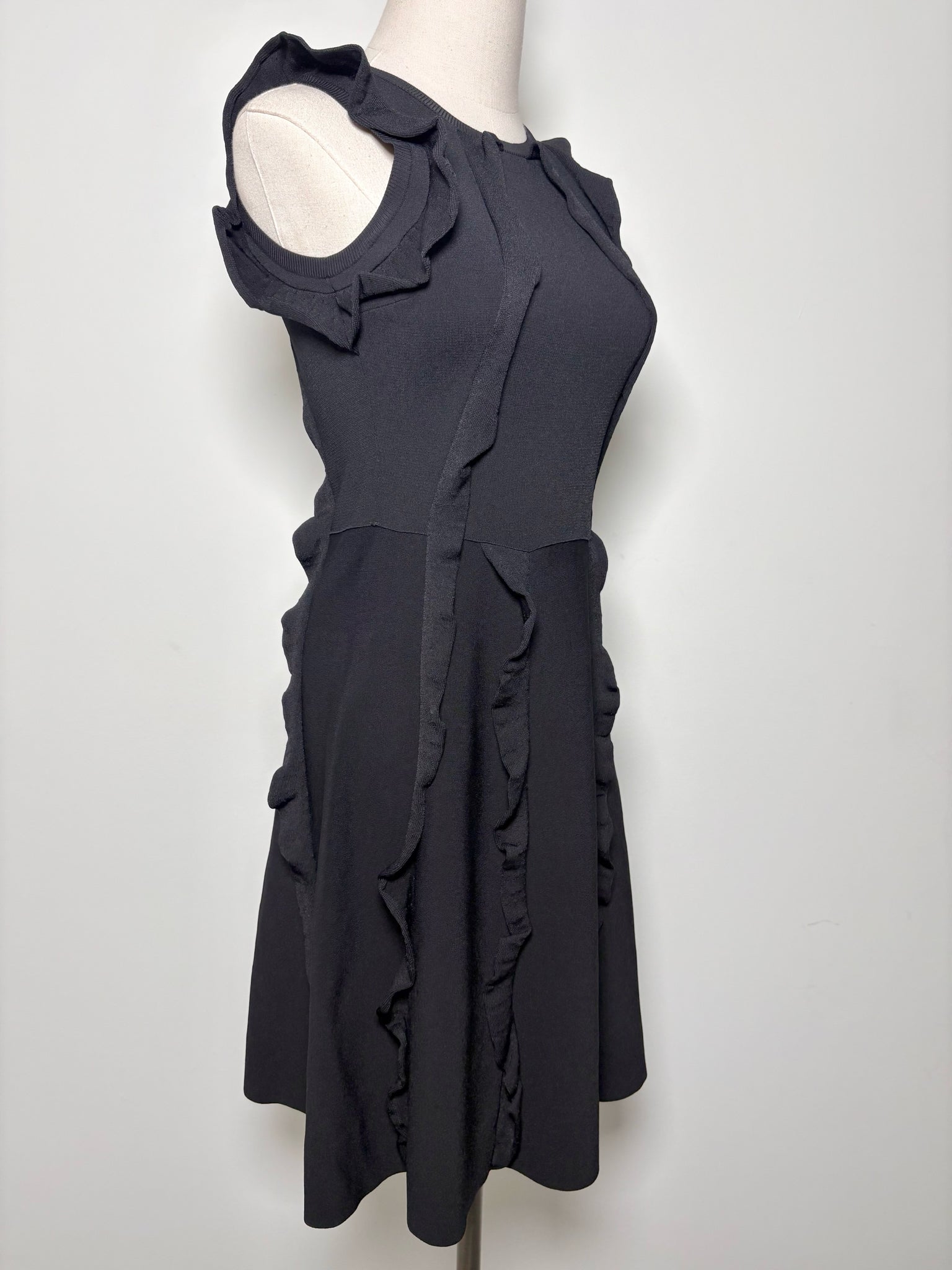 Women Size S Valentino Spa Black, Stretch Knit, Ruffles Sleeves Midi Dress