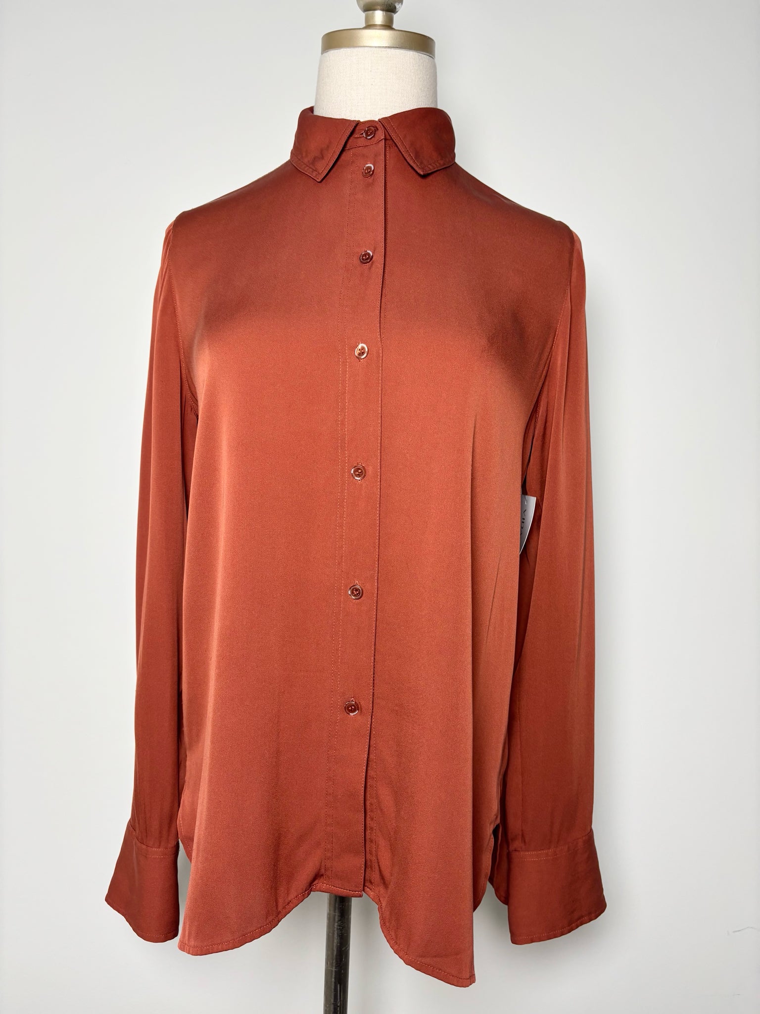 Women Size S Vince Copper Solid Silk Blend Blouse