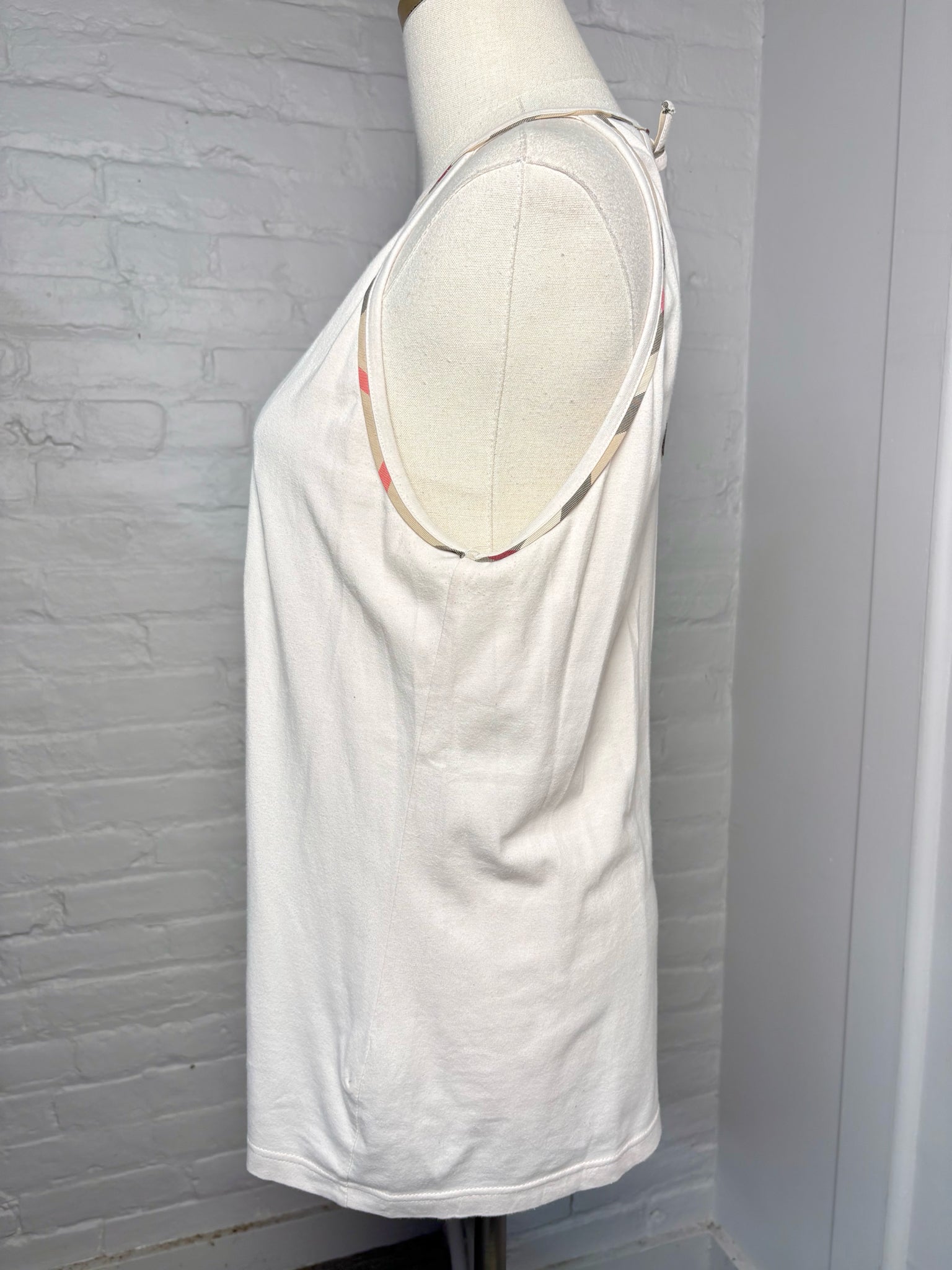 Vintage Burberry light pink halter top with plaid trim in a size extra large.