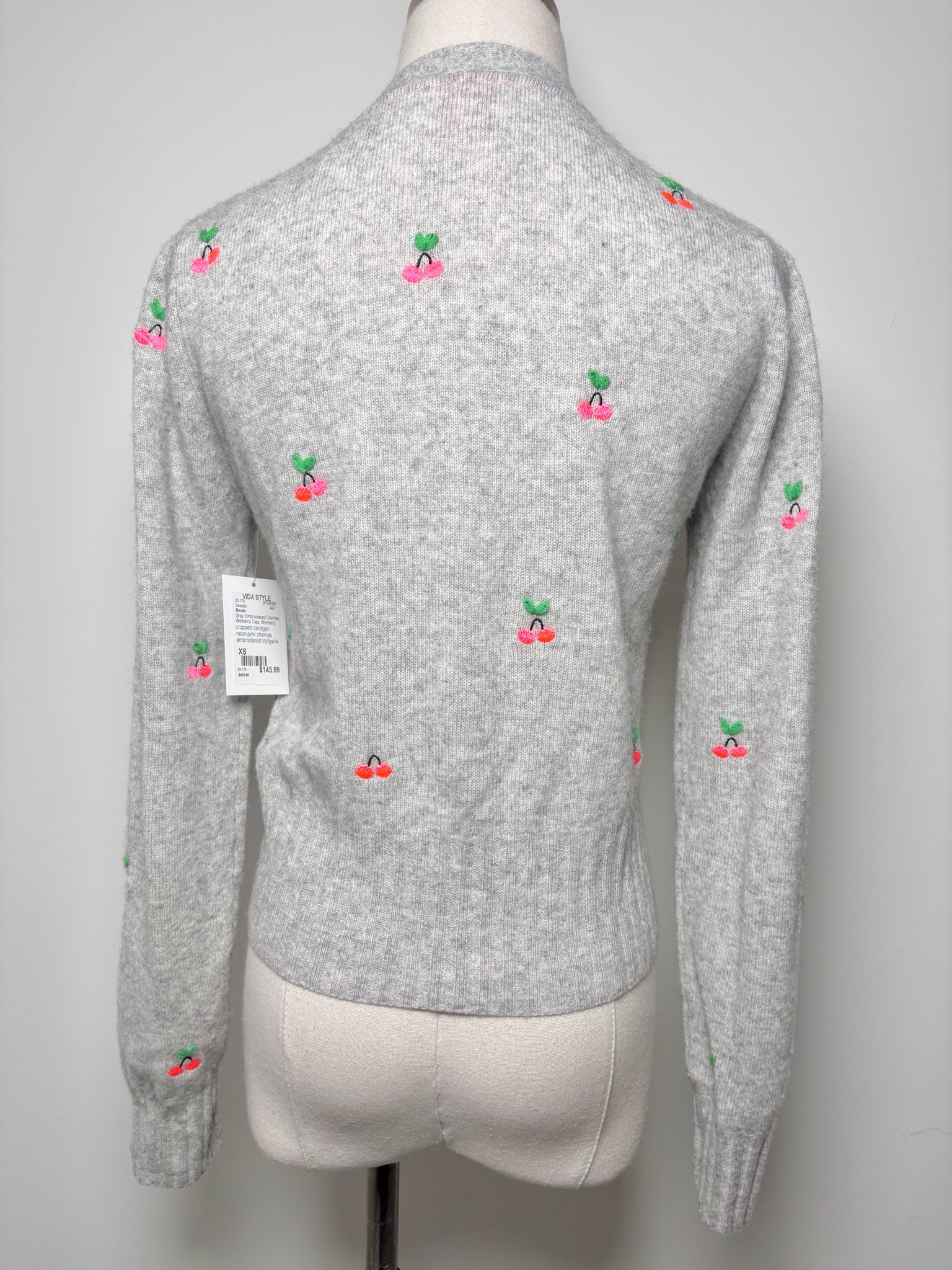 Women Size XS Brodie Gray Embroidered Cherries Cashmere Sweater