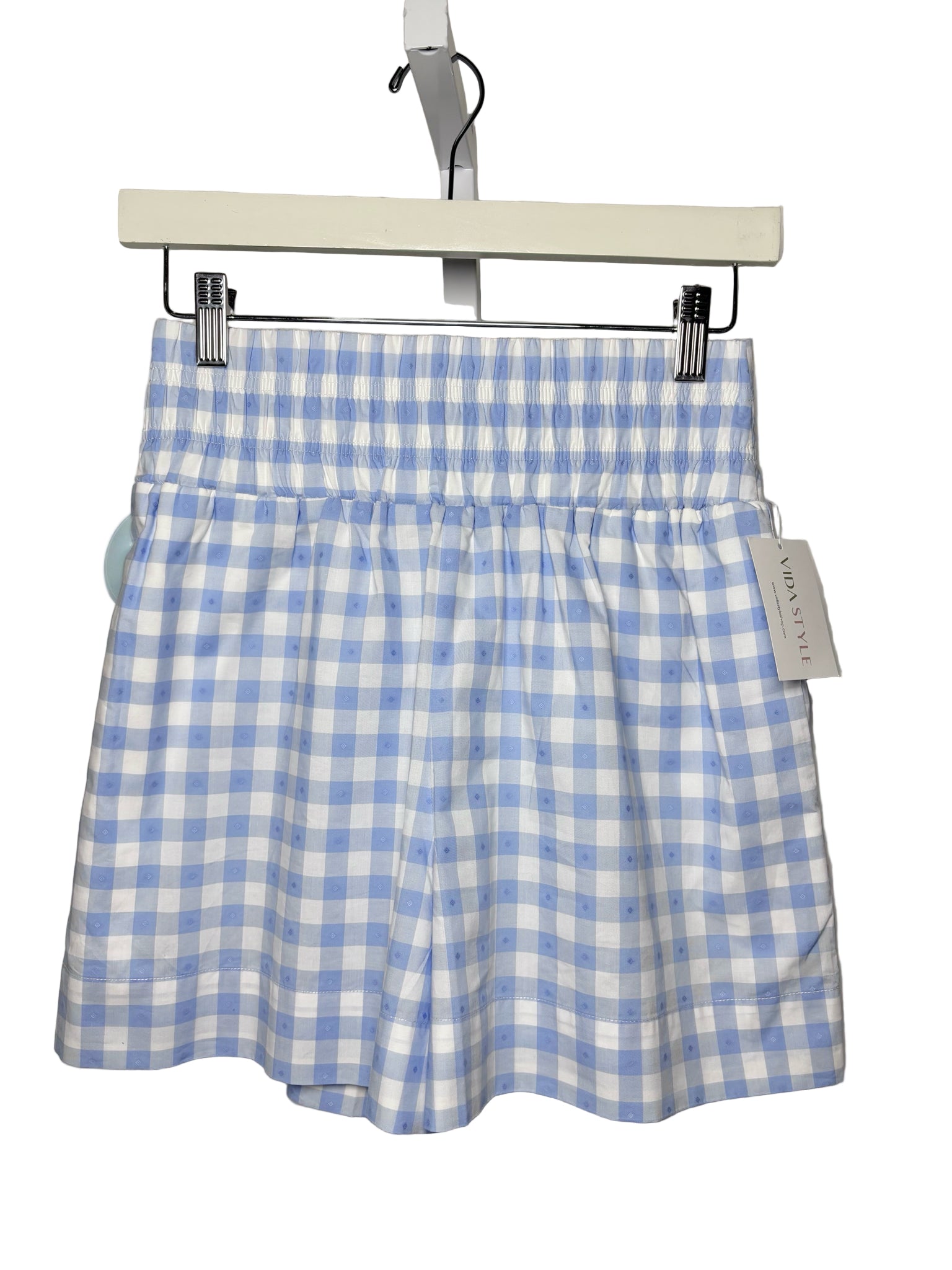 Hill House baby blue and white gingham pattern high waisted shorts with pockets in a extra small. New with tags.