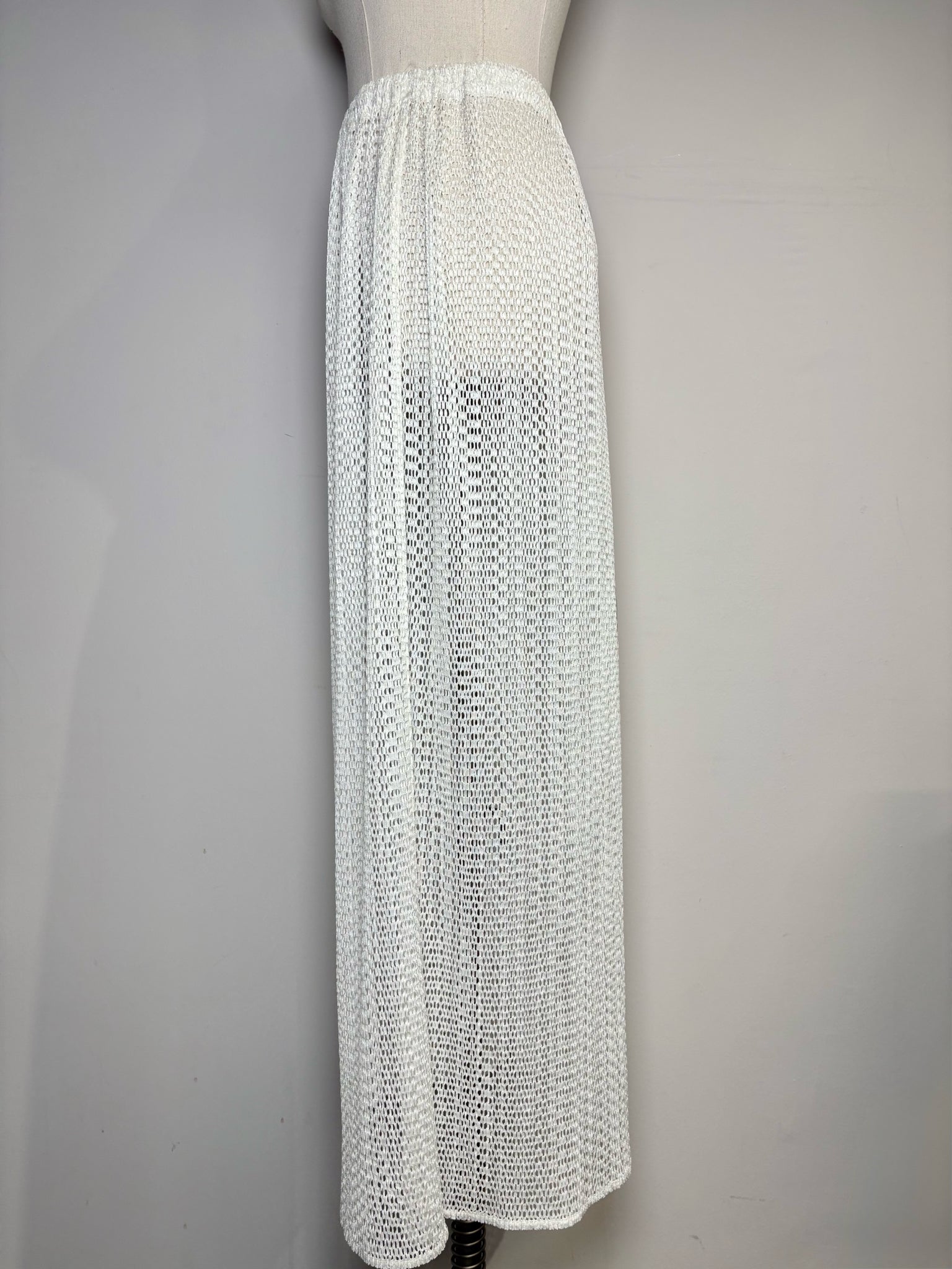 Elegant and contemporary, this Issey Miyake women’s skirt is crafted from white mesh stretch fabric in a pull-on maxi silhouette, offered in women’s size XS. This piece is part of a separates set and has a matching top.