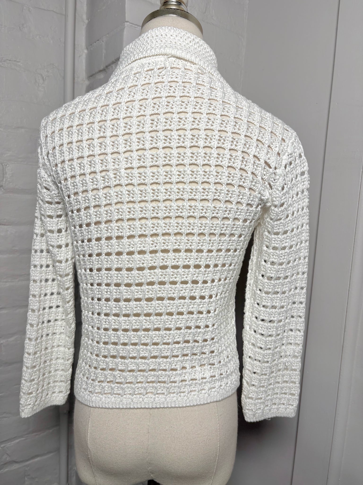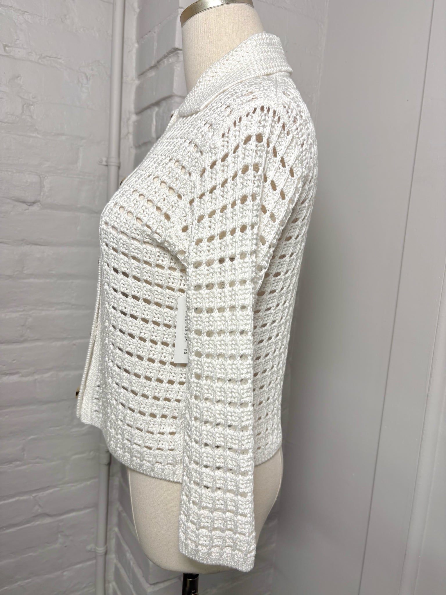 Vince white knitted see-through button down cardigan sweater with quarter sleeves in a size extra small.