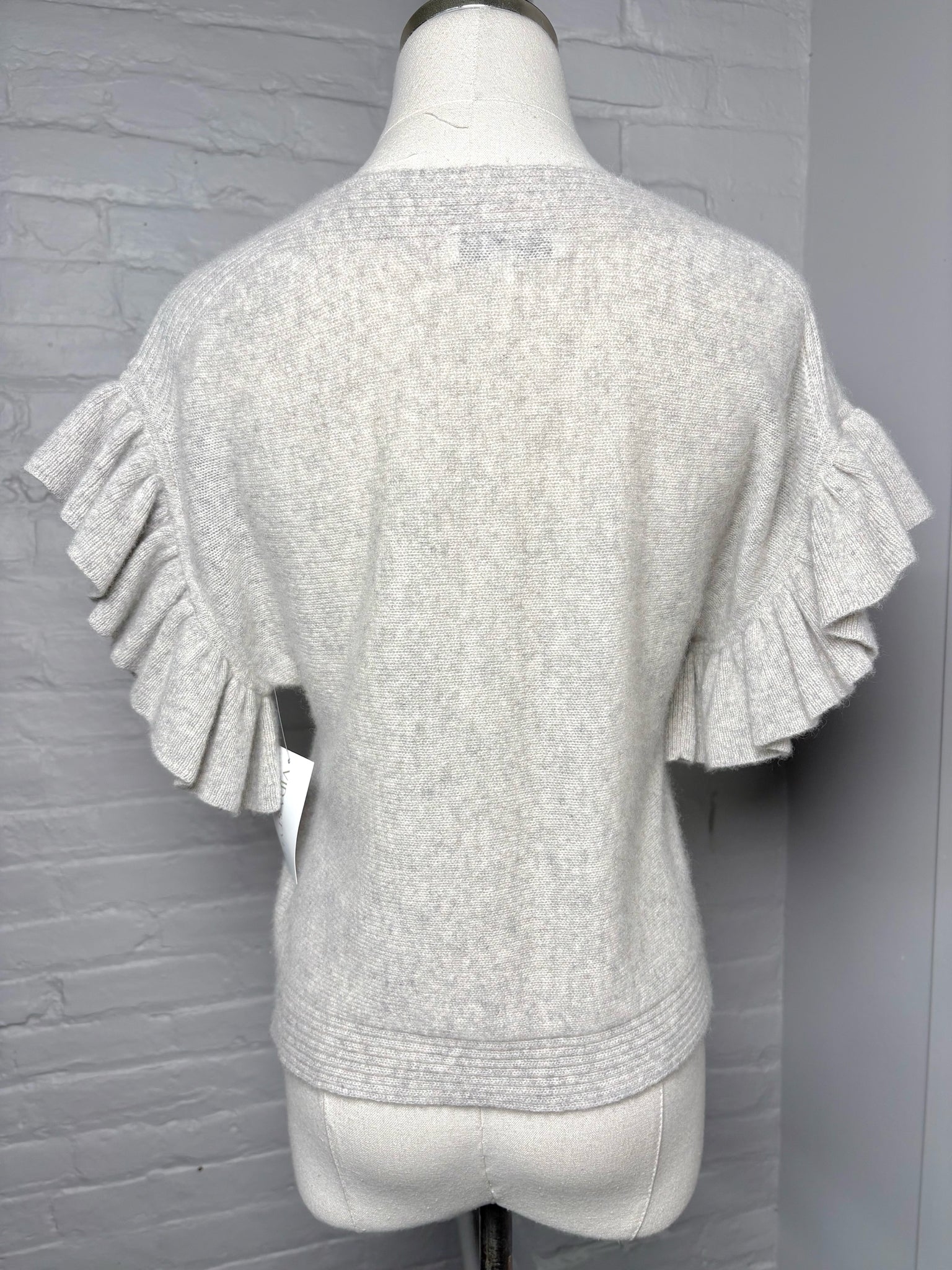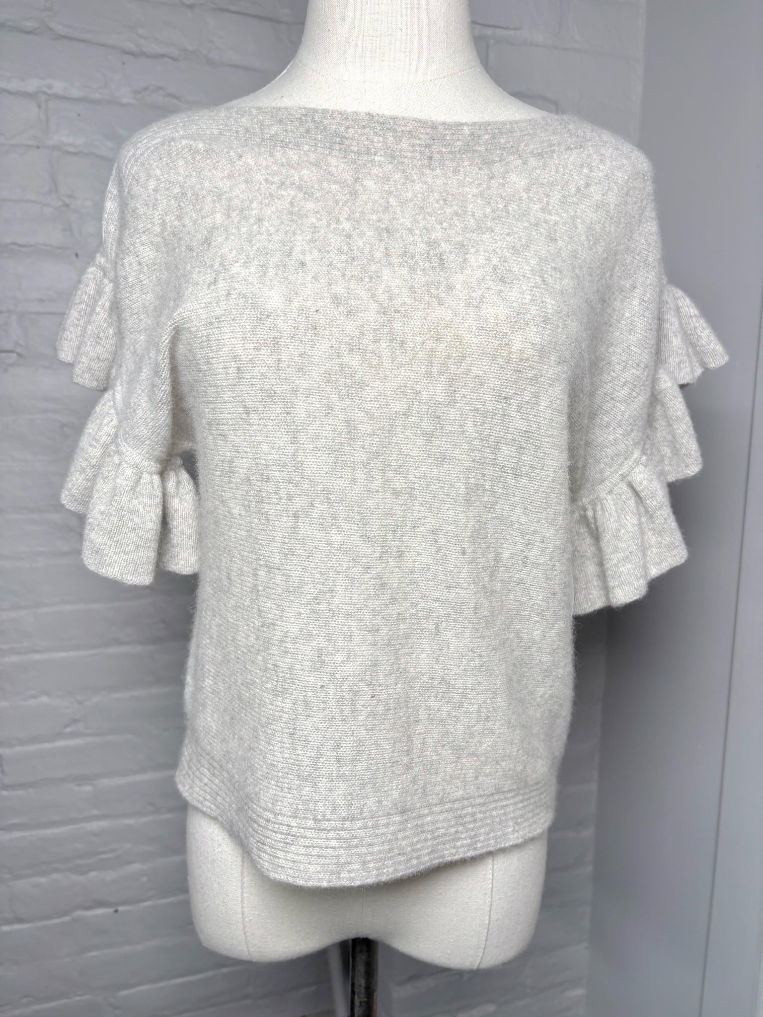 White + Warren light gray cashmere ruffle sleeves sweater in a size extra small.