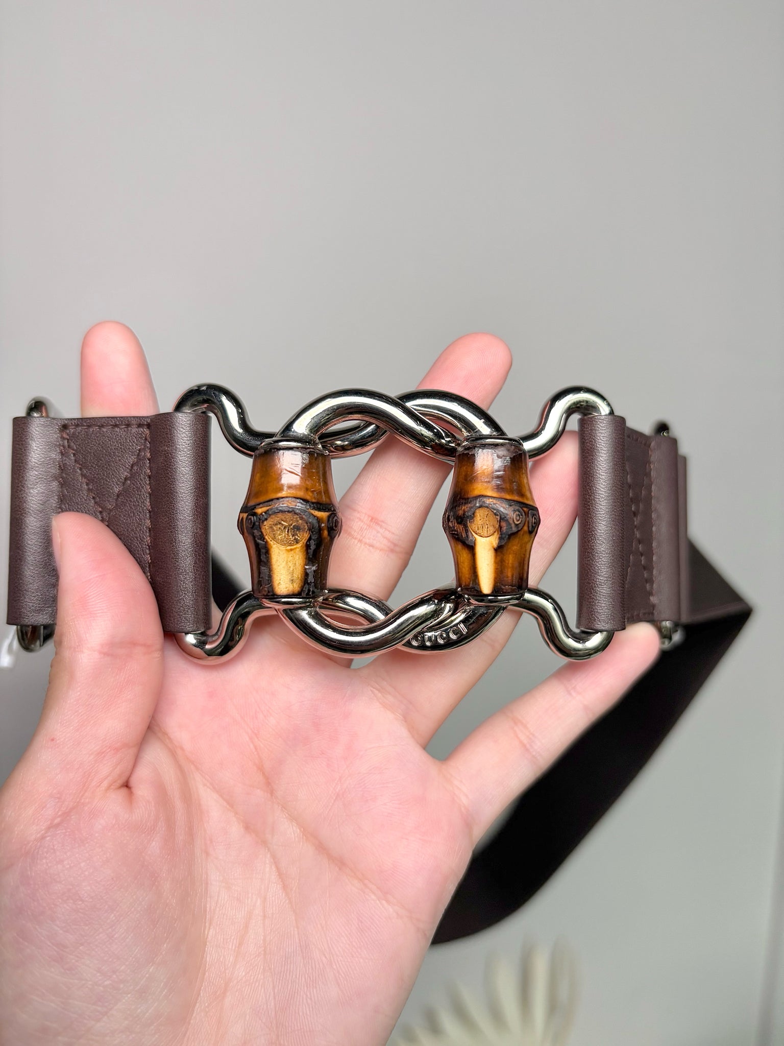Women's Gucci 95-38 (M/L) Brown Elastic Silver Buckle Bamboo Belt